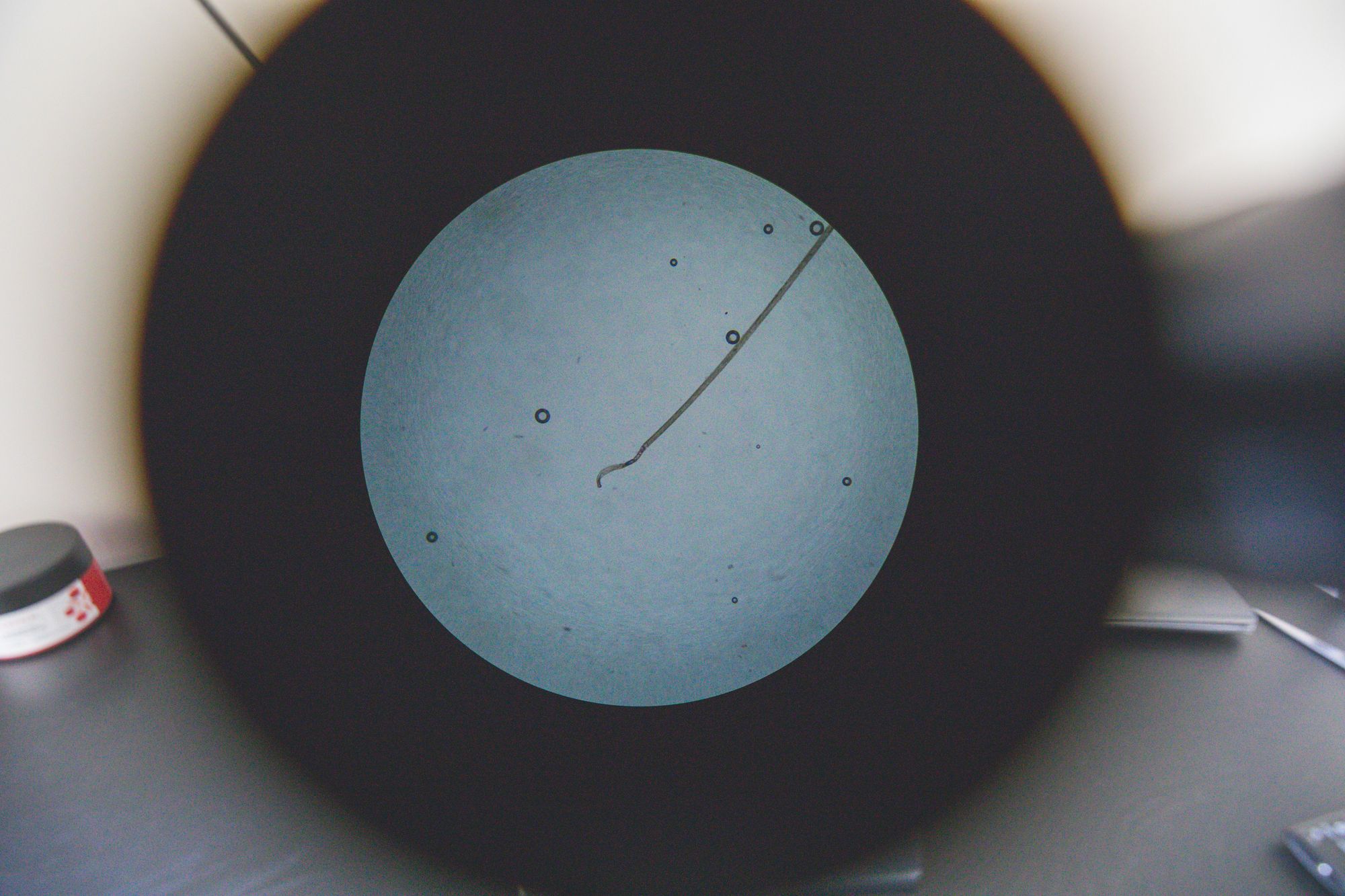 Tutkimus tehdään lääketieteellisellä mikroskoopilla. Sillä näkyy myös pälvikaljuominaisuus, joka ei ole vielä aktivoitunut.