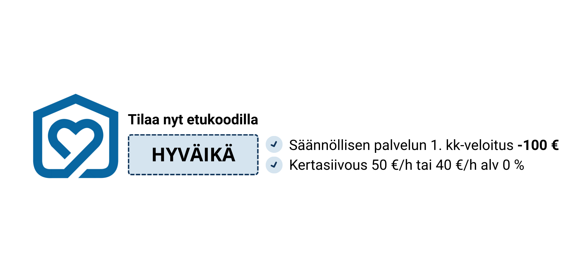 Palvelun sisältö on konseptoitu. Kotisiivous on helppo valita asunnon koon ja siivousten käyntitiheyden mukaan asiakkaan toiveen perusteella. Kotiapu on käytännön tukea arkeen, aina pyykkäämisestä kaupassakäyntiin. Kotihoiva tukee kotona selviytymistä ja hyvinvoinnin säilymistä, yrittäjä on aina terveydenhuollon ammattilainen.