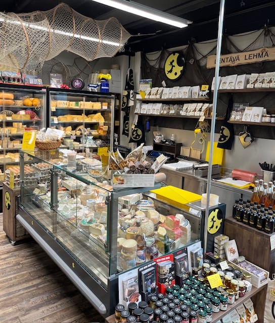 Lentävä Lehmä suosii valikoimissaan myös suomalaista pientuotantoa. Tiskistä löytyy laaja valikoima kotimaisia pienjuustoloiden juustoja.
